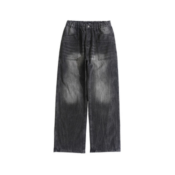 VIVGAE Original Vintage High Street American Trendy Brand Washed Distressed Boot Cut Pantalones de mezclilla para hombres y mujeres Loose Wide Cut