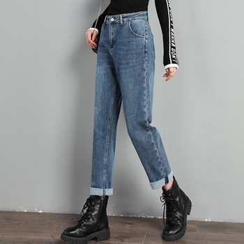 Kajun pantalones vaqueros de talla grande con corte de bota para mujer primavera nuevos pantalones Harlan de cintura alta Torre rábano adelgazante suelto 1829 tela vaquera