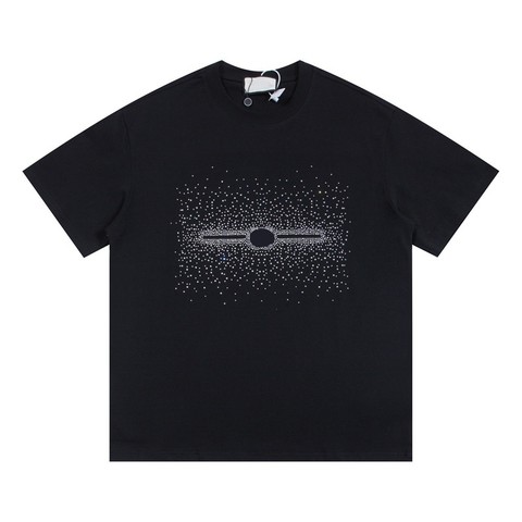 New 2025 Summer Pure Cotton Round Neck Short Sleeved T-shirt with Rhinestone Letters, Casual Loose and Versatile Pullover Top
